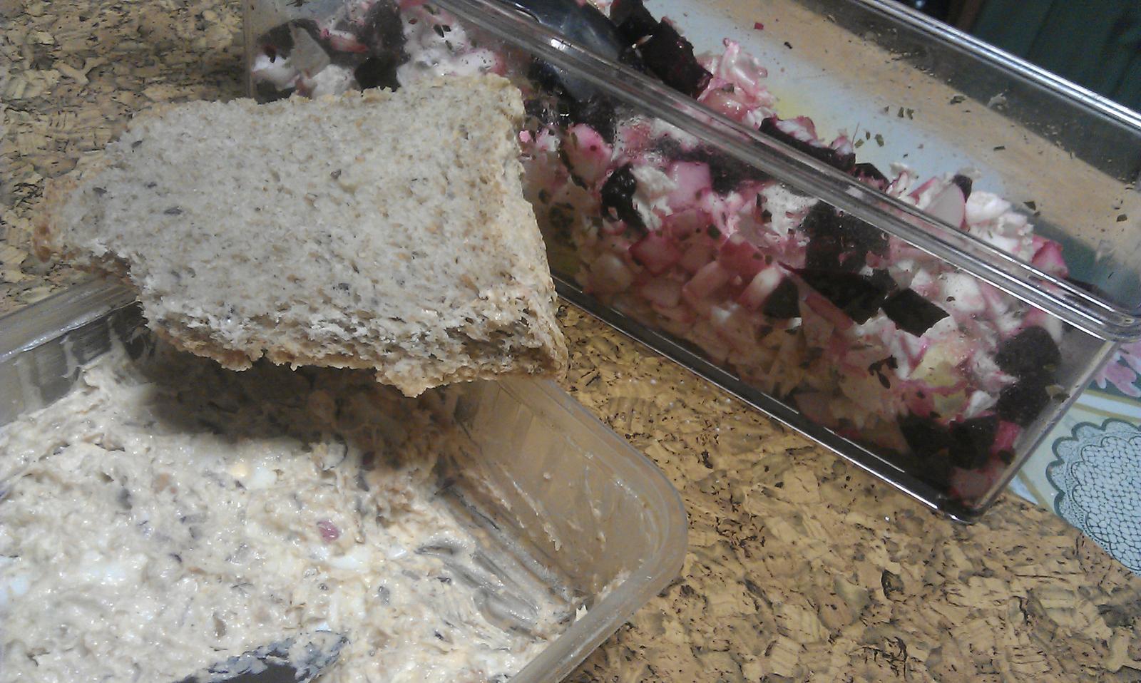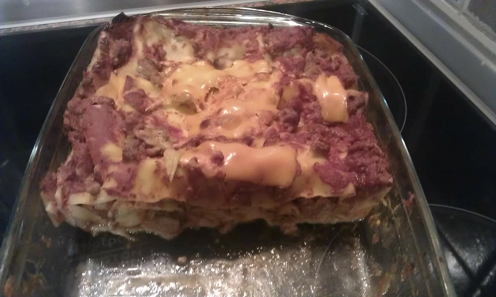 dnešné bolonské lasagne na obed a na večeru bola škvarková pomazánka s domácim chlebom a zeleninovým šalátom