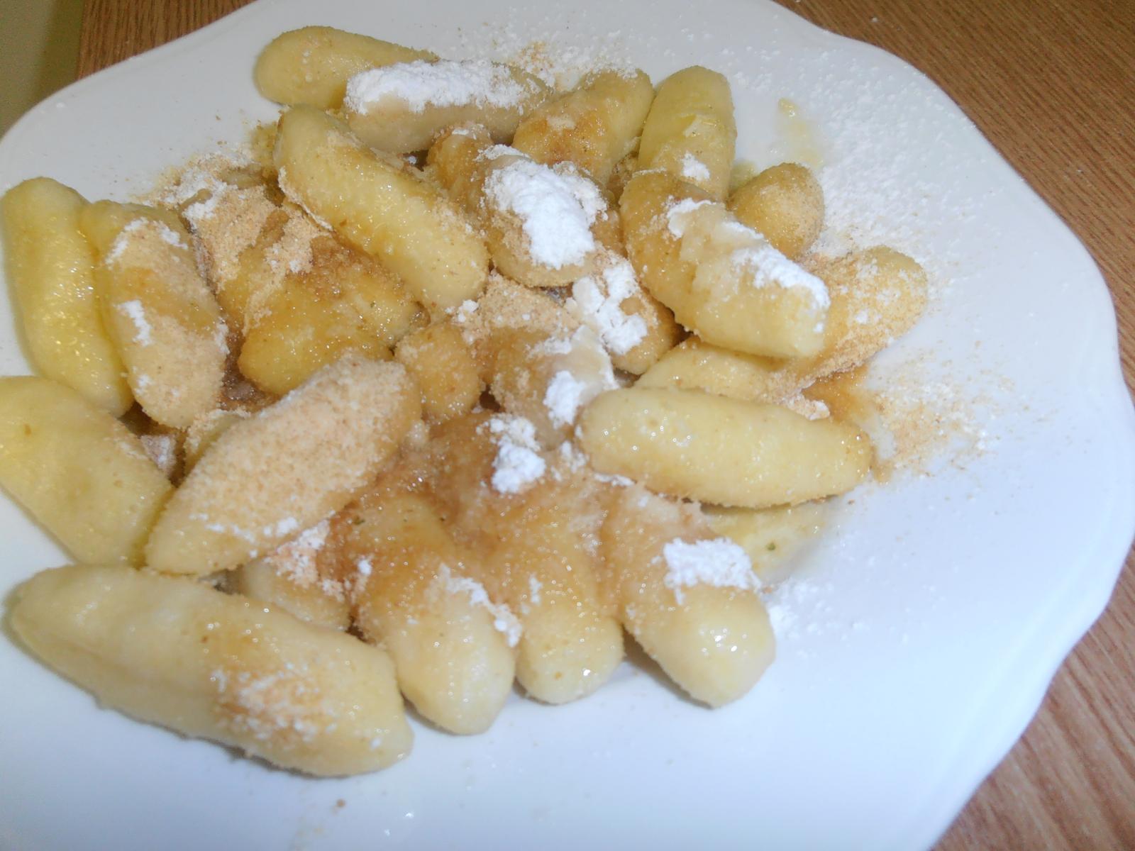 jablkove knedličky: http://www.mimibazar.sk/recept.php?id=52627.robila som ich dnes 1.krat a boli mňam.poliala som ich maslom a posypala grankom.dala som do cesta vanilk.cukor a troska kypr.prasku 🙂