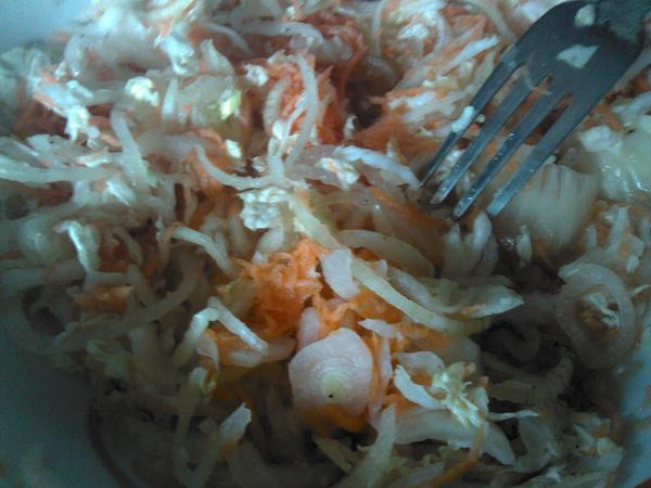 asi 1 kg očistených a na plátky nakrájaných jabĺk dáme udusiť bez cukru. Necháme udusiť.