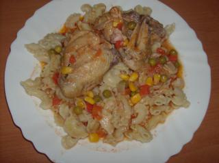 u nás dnes - už zajtrajšia mäsková polievka 😀 a druhé : penely s kuracím mäskom a mexickou zeleninou