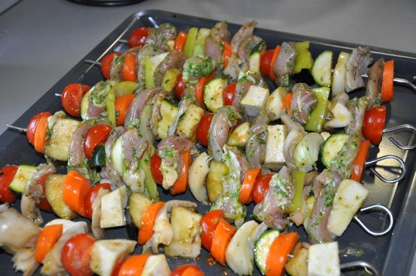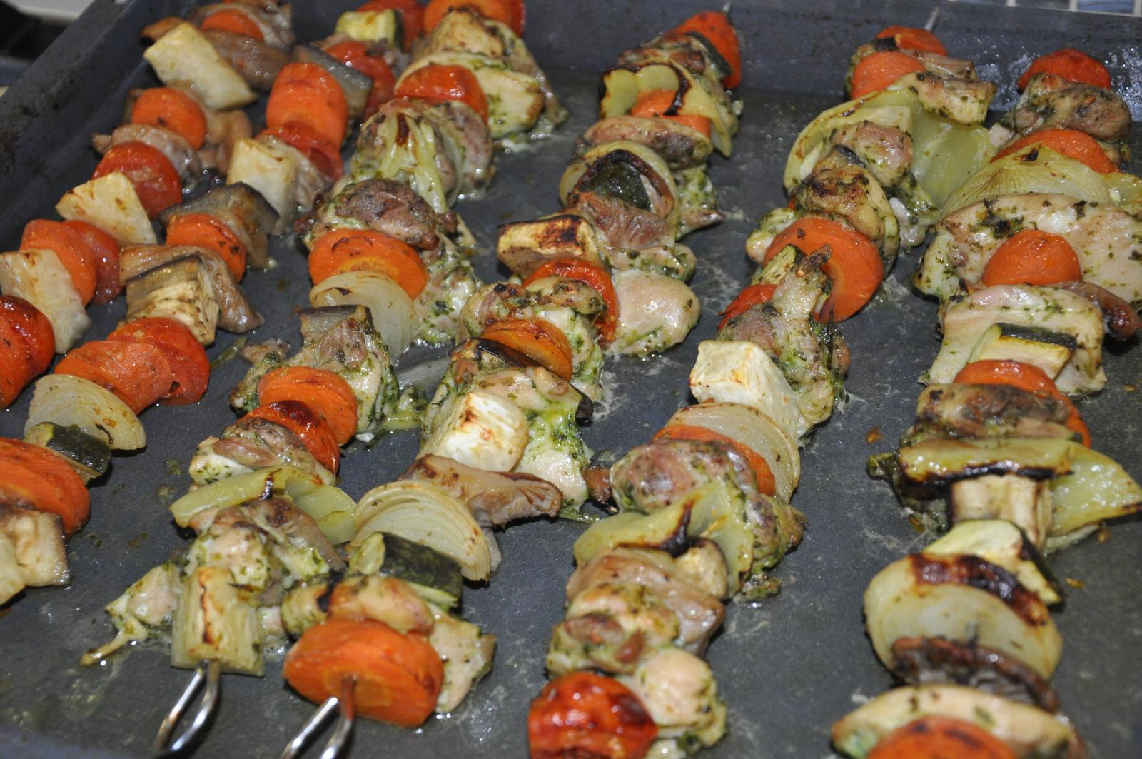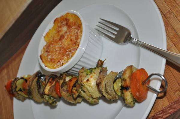 kuracie raznici a pecena zemiakova kasa s parmezanom
