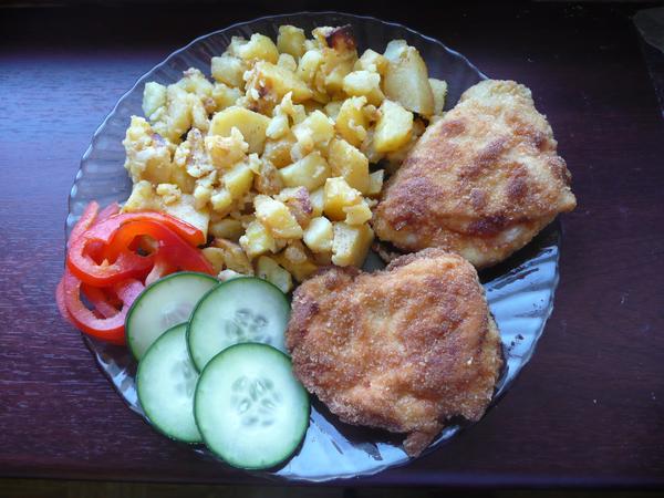 Ahojte, dnes nedelna polievka so slizikmi, medajlonky z panenky z diviny, pecene zemiaky a marhulovy kolac. 🙂