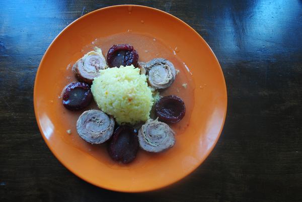 prababkina slepačo-hovedzia polievka, zemiaková kaša, pečená cvikla a čevabčiči a moja domaca tatarska