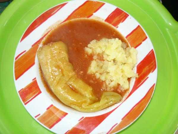 včera aj dnes plnená paprika- dostala som inšpiráciu tu na MK- už ste ju viaceré varili. U nás idú len guľky, 2 papriky som dala len pre chuť....