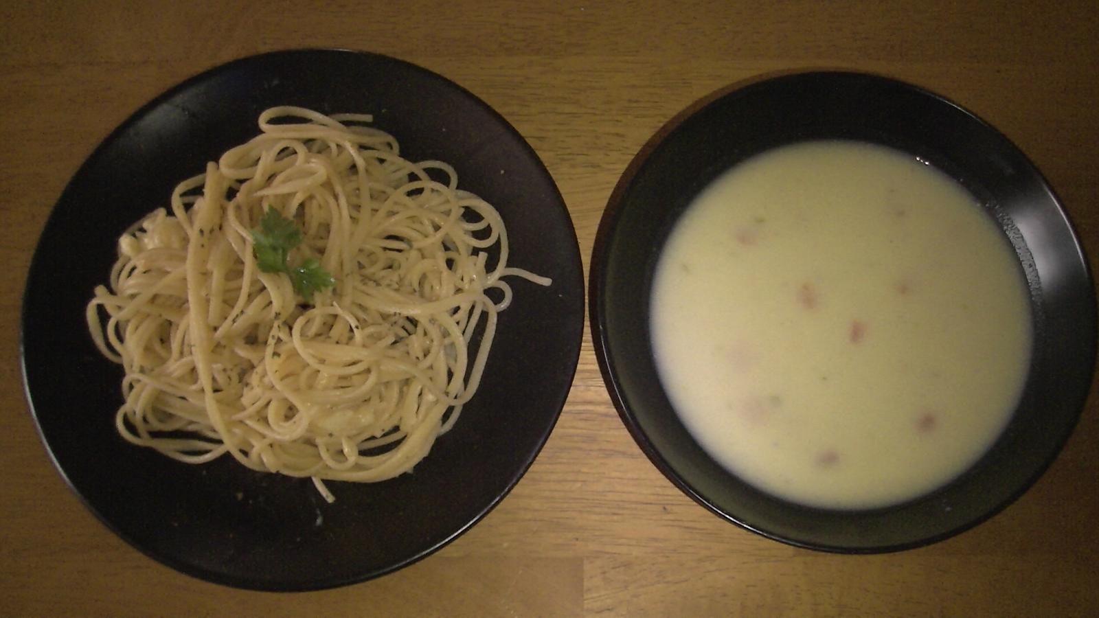 U nas dnes budu garnely so spagetami a fetou take echtne jarne jedlo 🙂