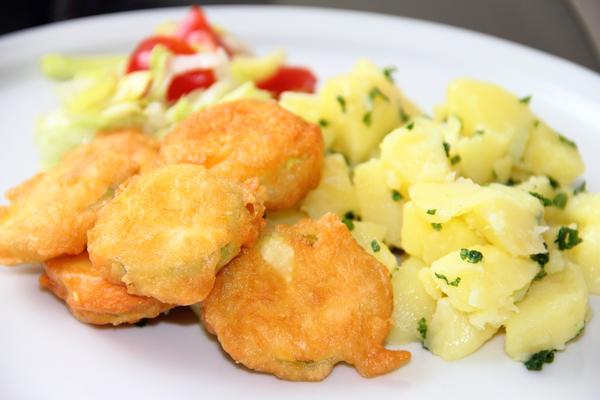 cuketove kolieska v syr.cesticku, varene zemiaky s vnatkou a maslom, salat 😉