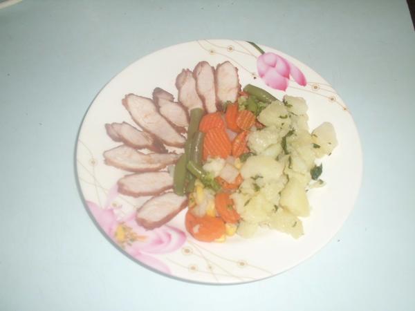 pórková polievka, ryža a kuracie mäsko na ananáse 🙂