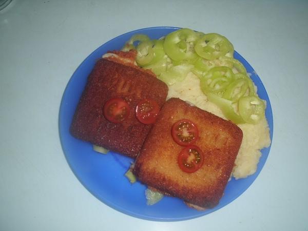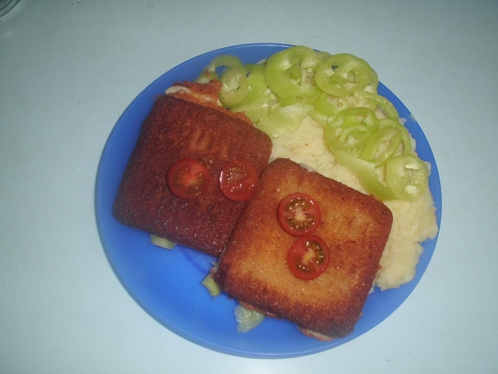 foto zo včera...vyprážaný syr...trochu mi prihorel 😖 ...krpatá práve trónila na šerblíku a bolo treba utrieť....ved viete čo.