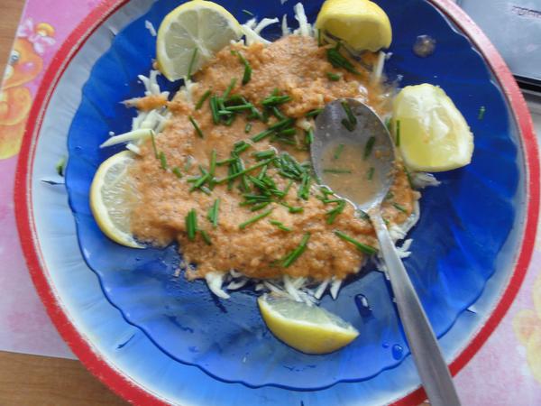 dnes sme dojedli polievku, na druhe bolo kuracie sote v zemiakovo-cuketovej placke, mrkvovy salat,