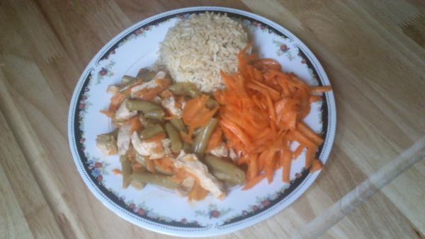 A prikladám aj foto čo sme mali včera: kuracie prsíčka na hrášku a na mrkvičke + opekaná ryža+mrkvový šalátik 🙂