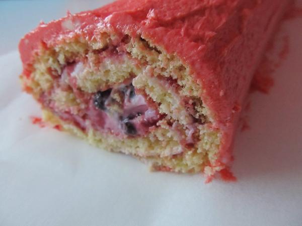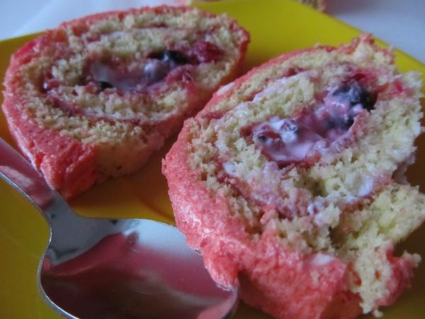 Hotovú a vychladnutú roládu potrieme jahodovým džemom, vyšlahanou šlahačkou. Na začiatok rolády(tam, kde začíname rolovať) naskladáme ľubovoľné ovocie, zvinieme a necháme stuhnúť v chladničke aspoň 1 hodinu. Medzitým si pripravíme krém na ozdobu: