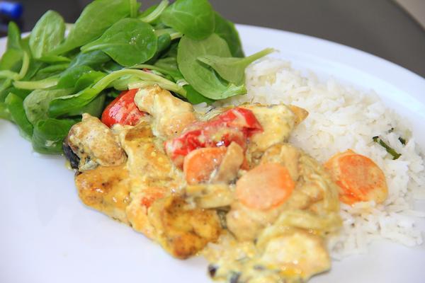 nedeľa: slepačia polievka, pečené kuracie mäso so zemiakmi a ryžou, uhorkový šalát a dojedli sa posledné kusy palaciniek 🙂