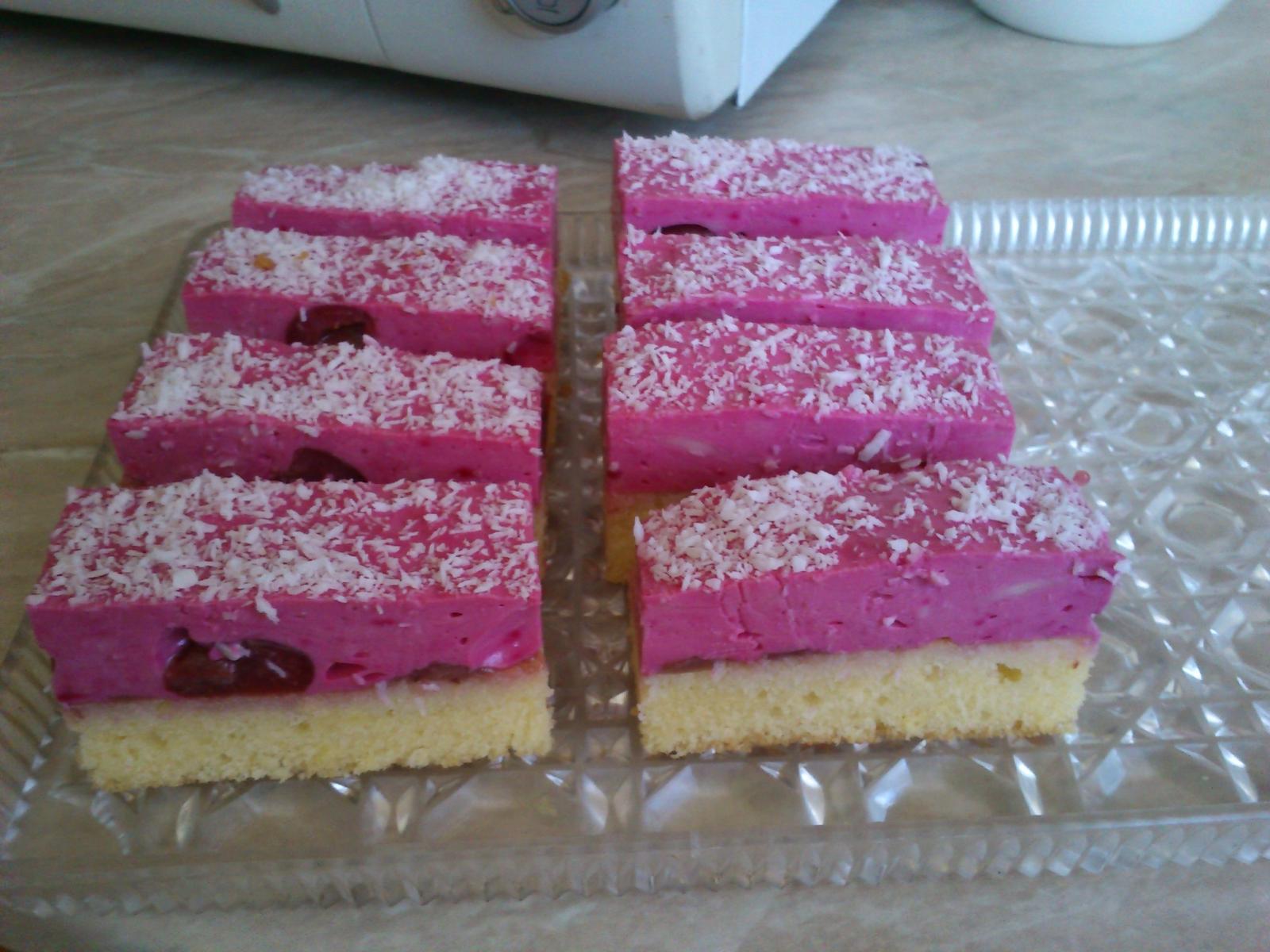 u nás sme včera dojedali rascovú s vajíčkom a haluškami, cukinové fašírky, y piatka, namiesto hranoliek som dorobila dusené zemiaky na cibulke a paprike, poobede sme sa išli kúpať na Zelenú vodu, dnes sme mali slepačiu polievku, dusené bravčové karé na hríboch, posypané syrom, pečenú bravčovú roládu plnenú vajíčkovou plnkou, ryžu, uhorkovo-rajčinový šalát, poobede nás čaká oslava-mama má narodeniny, tak bude grilovačka a pridávam fotky z koláčikov, čo som pripravila na oslavu, koláčik Tang s višňami, Bebe dobré ráno a púštny kvet, + foto čo som robila v týždni egrešovo-ríbezľová bublanina -jogurtové cesto, uhorky-kvašáky, už aby boli hotové, peknú nedeľu prajem