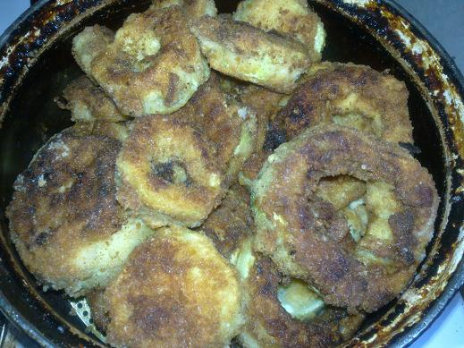 takze vcera sme oslavovali muzove a moje narodky tak bolo kotlikovy gulas, grilovana klobasa a kuracie stehne a spiziky /namarinovane kuracie stehna obalene v slaninke som striedala so zemiakmi a cibulkou/, varena kukurica a ako sladke bol puncovy kolac, kremes, tvarohovo/slivkovy kolac, pampuchy s jahodovym lekvarom a este bola aj syrova rolada a zostala nastastie aj na dnes a na zajtra si dcera rozkazala rezne so zemiakovou kasou 😉