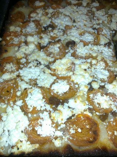 ryzovy nakyp s broskynami, sopsky salat s ovcim syrom
