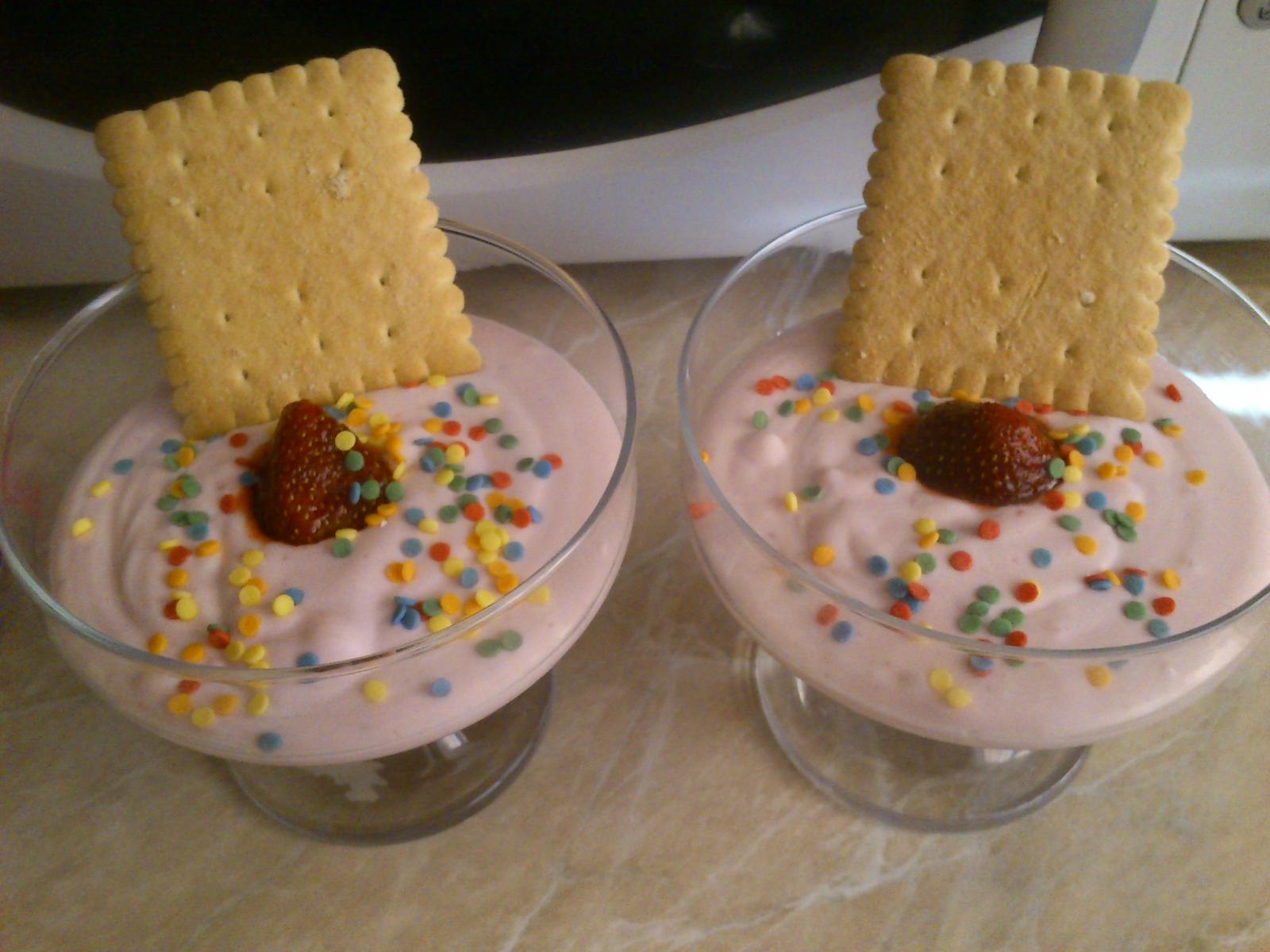u nás dnes vývar z bravčových kostí so zeleninou a slížikmi, dusené marinované bravčové karé na leči, posypané strúhaným údeným syrom, slovenská ryža, čerešňový kompót, + foto včerajšieho domáceho termixu s jahodami, čokoládový som robila tiež, ale ten som nefotila, mám ho v albume, a smotanovo-marhuľového koláčika so želé 😉