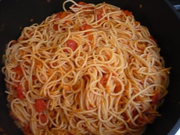 Dnes cukinova polievka na kyslo zo vcera a spagety s paradajkovo-cviklovou omackou a syrom.