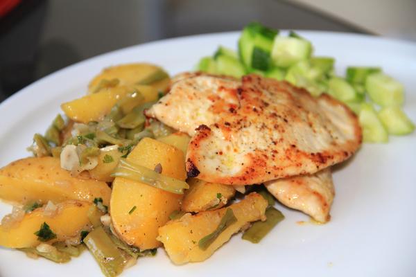 tak dnes sme mali zelennkový šalát s balkánskym syrom, opekané prsíčka a pizza štangle so syrom 🙂 mňamkové to bolo 😉