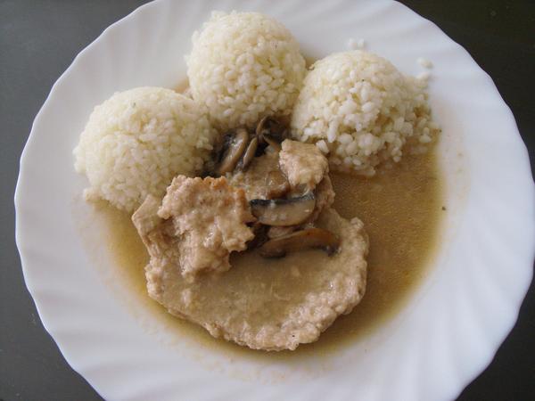 gulášová polievka, ryža s rezňami a čalamádou 🙂