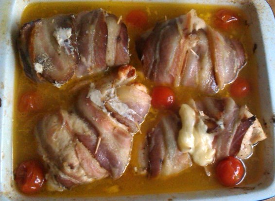 dnes hovadzí vývar s rezančekami, pečené kuracie stehná a zemiaková kaša a pre starších ku kaši kuracie prsia obalené v slaninke a plnené mozzarelou na víne ...recept som našla v najnovšom čísle Dobrého jedla ..tak som ho musela vyskúšať 😉 a poobede koláčik čo sme spravili s mojou malou pomocníčkou včera večer 🙂