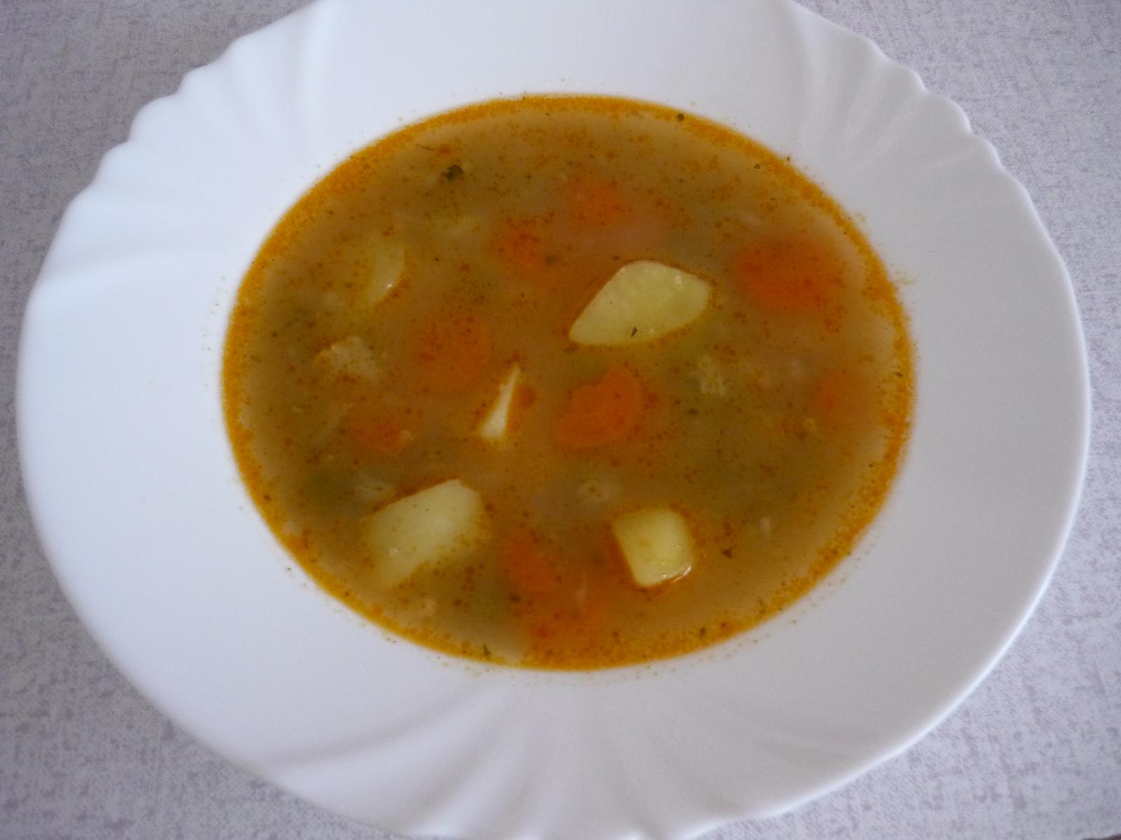 šošovicová polievka + hranolky a rybky...