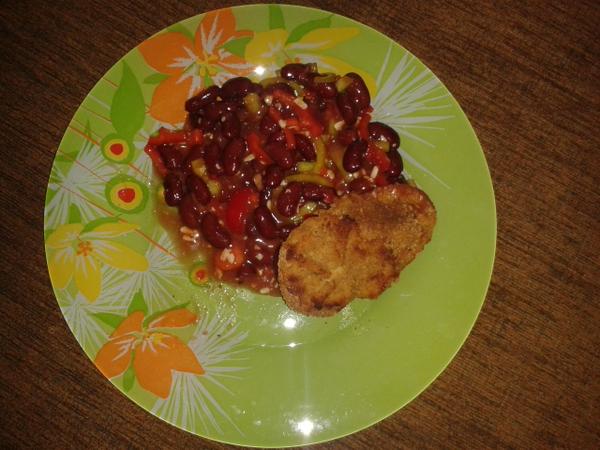 Maly dopapal slizikovu polievocku a druhe som robola rezne z kuracich prs,trojobal z nizkosacharidovej muky aj struhanky a k tomu pre mna pikantny fazulovy salat,malemu zemialova kasa 😵