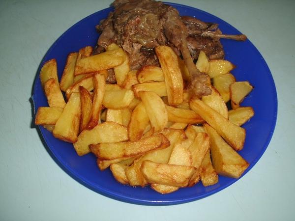 Dlhšie som tu nebola, tak sa vraciam....nedela : hranolky a pečený zajac prešpikovaný slaninkou