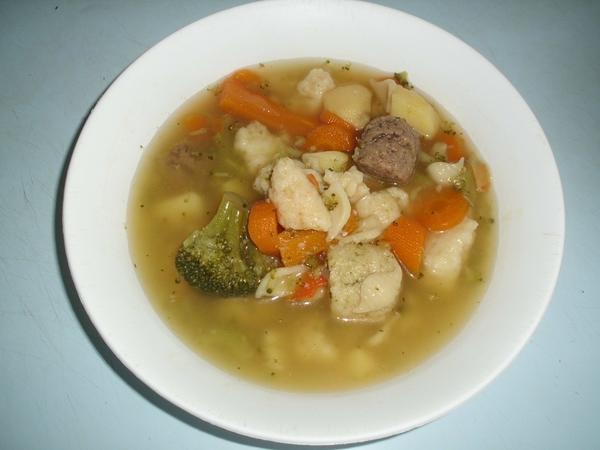 Dnes osm zvrtla len takuto polievko narýchlo s pečienkovými a cesnakovými haluškami. zo včera nám ostali tie fliačky s kapustou. Zajtra sa chystám urobiť granadír, ale to sa ešte može zmeniť, uvidíme ešte.
