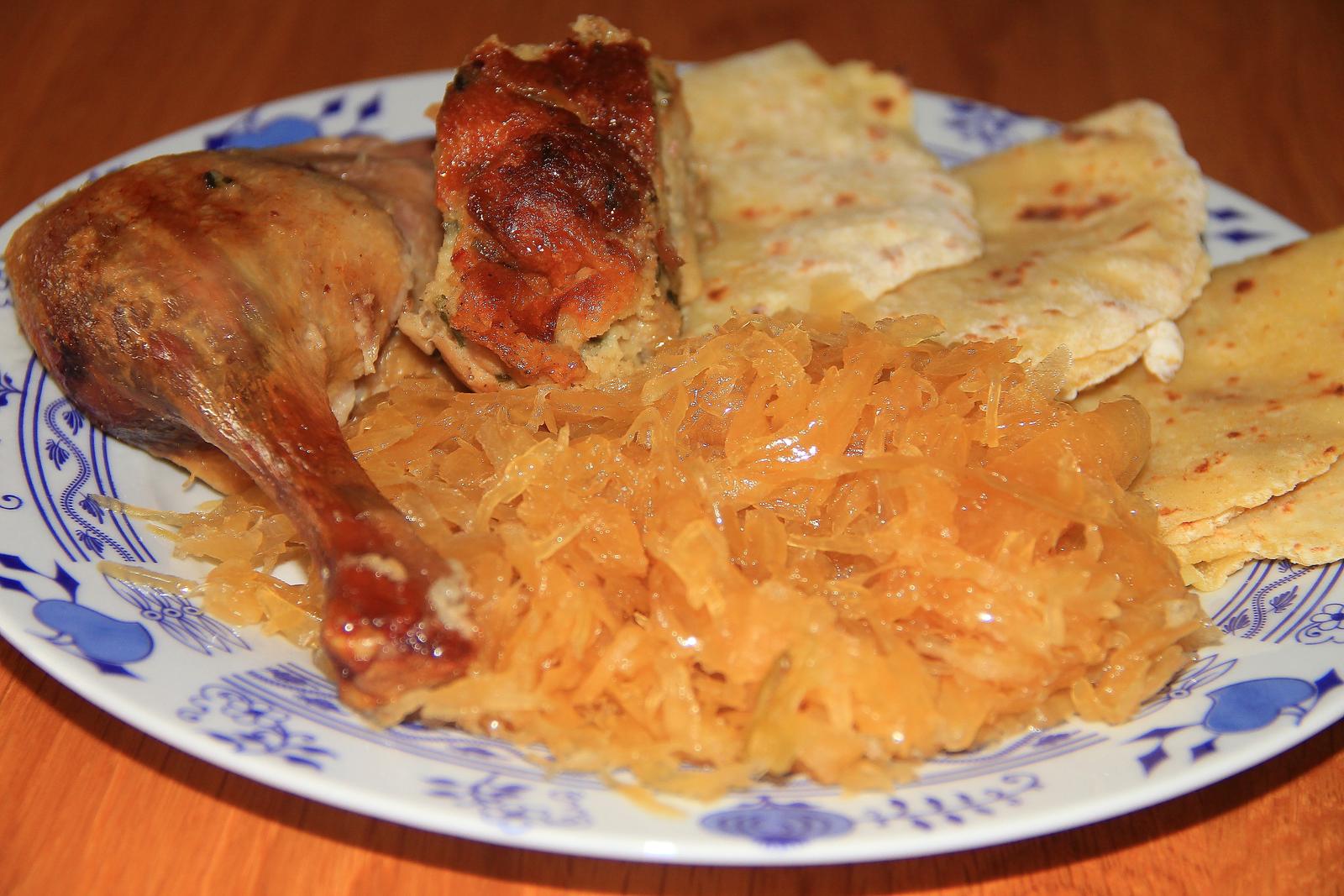 ahojte , dnešná pečená kačka s plnkou, lokše a kapusta ... žľtkové rezy 😉
