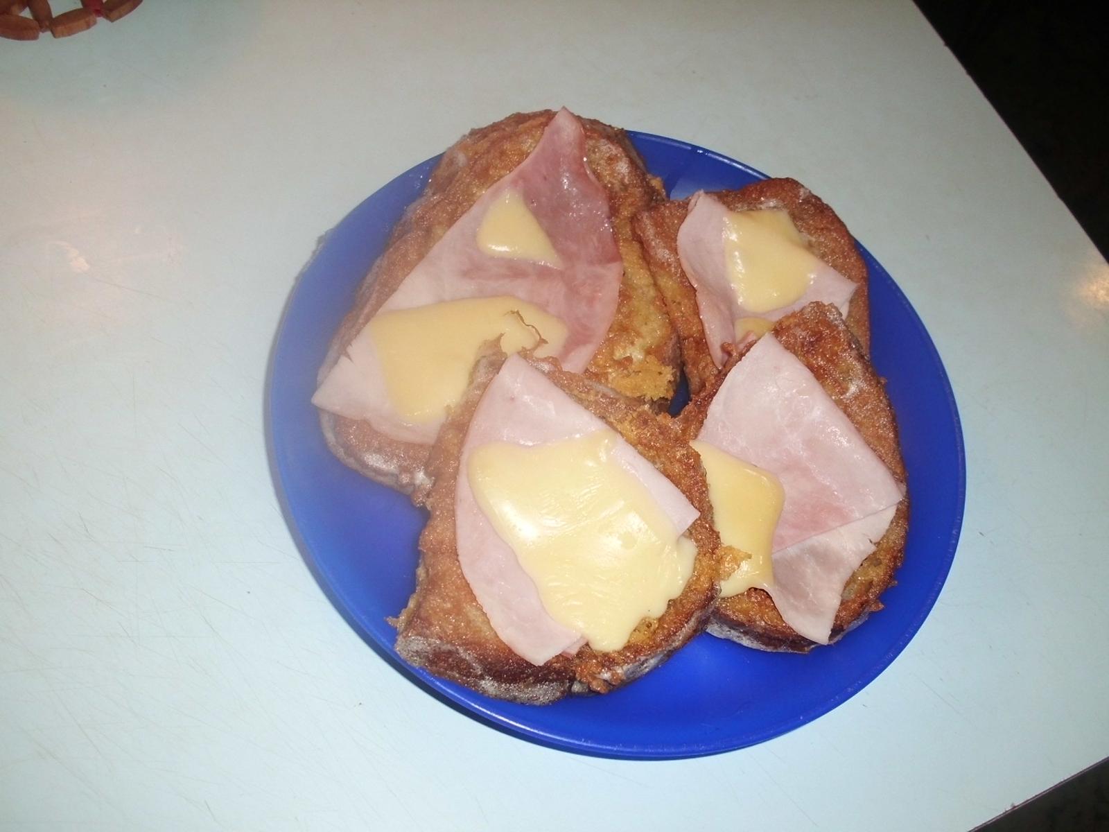 Včerajšia večera: chlieb vo vajíčku so šunkou a so syrom.