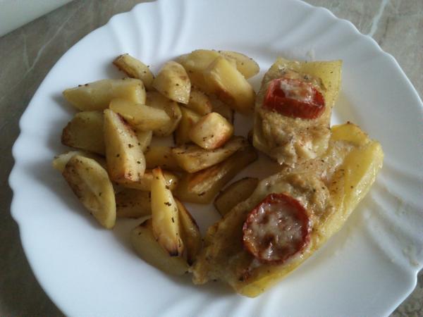 ...tak my budeme mať grilovaného lososa a k tomu zapekané zemiaky s paradajkami 🙂