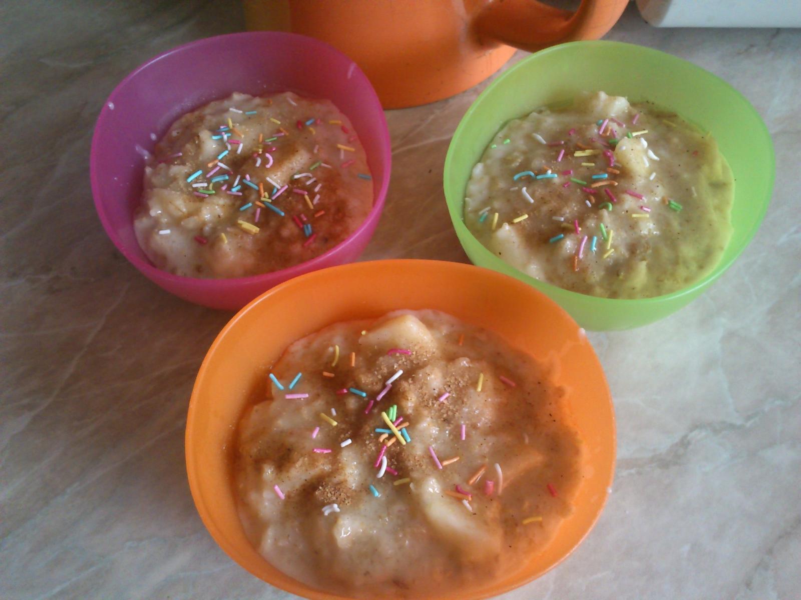 cez vikend sme boli na navsteve, takze som nevarila ja, ale mali sme zeleninovu polievku a bryndzove halusky, v nedelu vyvar z bravcovych kosti s pismenkami a kopou zeleniny, bravcove kare na sampinonoch so zemiakmi, k tomu zeleninovy salat, jablkovy kolacik.. no a dnes uz som varila ja.. hrstkova polievka a jablkova zemlovka, zajtra dojeme polievku a na druhe jedlo morcacie kusky na leci a k tomu noky 🙂