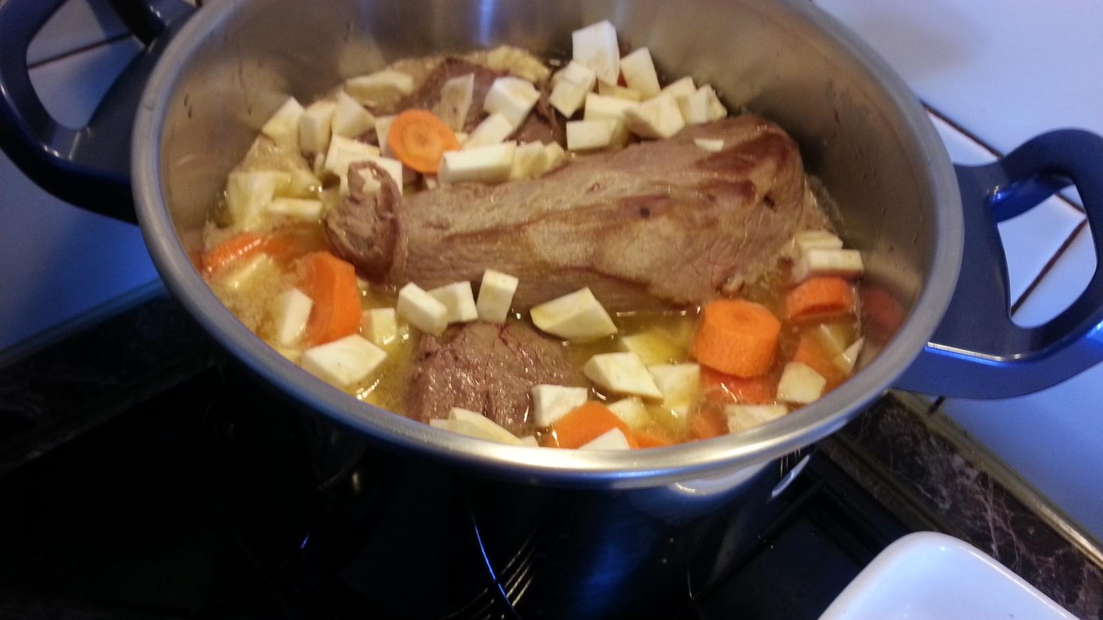 kyslá zemiaková polievka so zelenou fazuľkou, špagety, morčacie mäso na hubách a už kysne cesto na makový a čokoládový závin 🙂
