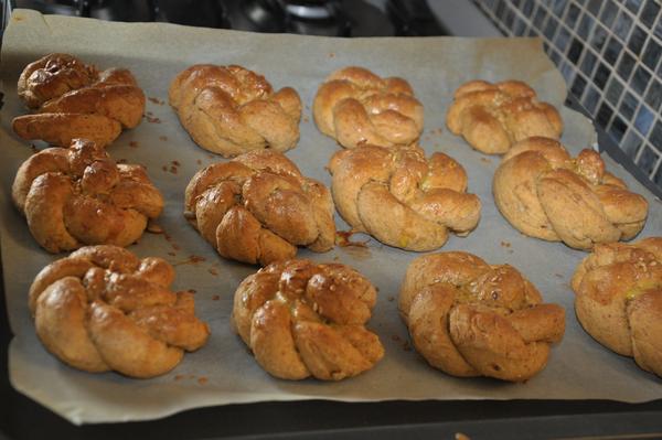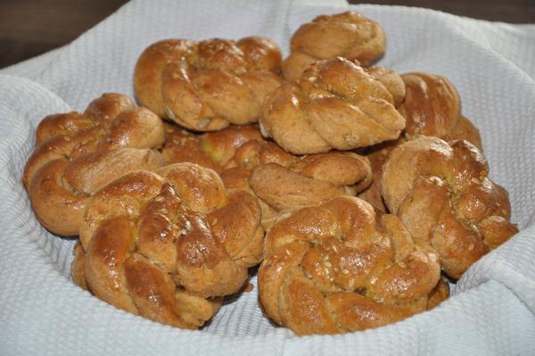 rececpt: 425g hl.múky, 1 kávová lyžička kypriaceho prášku do pečiva, 0,5 kávovej lyžičky soli, 50g cukru, 50g masla (rozpustené ale nie vrelé), 20 g droždia (polovica kocky), 2,5 dl mlieka. Všetko šupnem do pekárničky na program cesto. Keď vykysne, rozvaľkáme na veľký plát, ten posypeme kryštálovým cukrom, dvomi škoricovými cukrami, ja som dala aj pomleté orechy, ale nemusia byť. Kto má rád hrozienka, môže pridať aj tie. Potom poprskáme rozpusteným maslom (cca 50g). Zvinieme ako závin a krájame asi 1cm hrubé pláty, ktoré ukladáme na plech vystlaný papierom, pred pečením potrieme rozšľahaným vajíčkom .Dáme piecť do predom vyhriatej trúby na 180st.