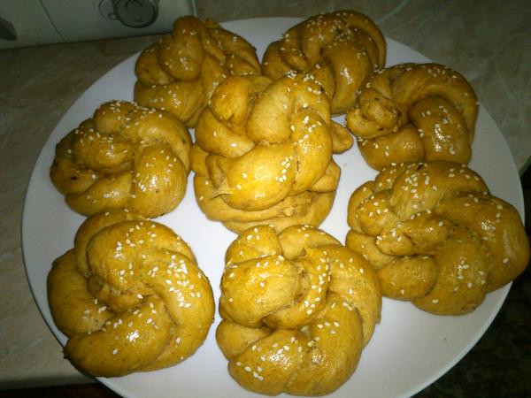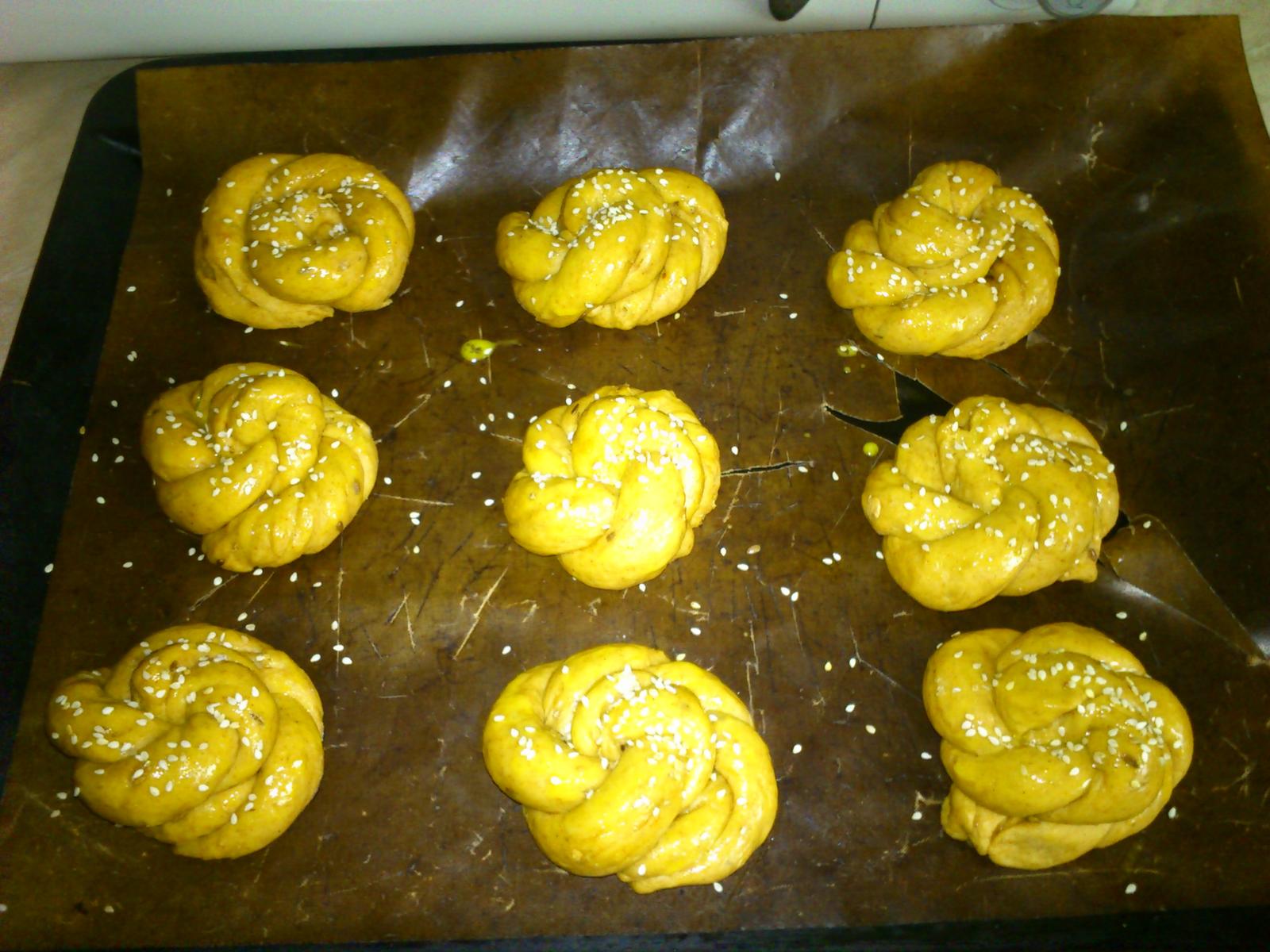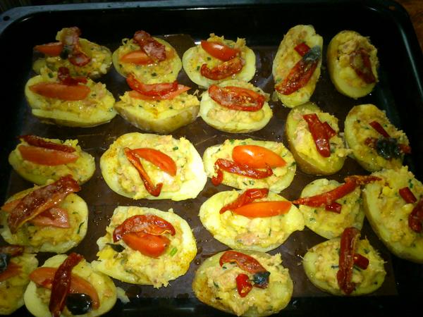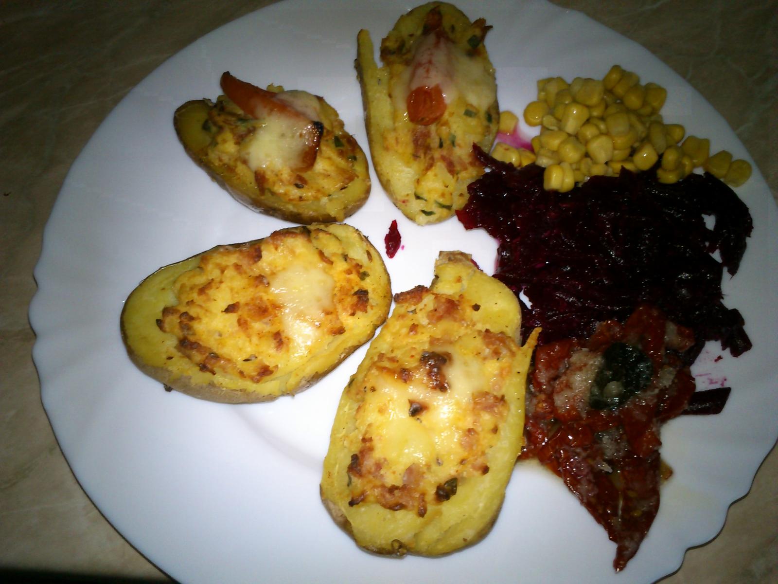ahojte, ja som včera varila kapustovú polievku s klobásou a rajčinami, plnené zapekané zemiaky - jeden plech som plnila (šunka, tavený zyr, vydlabané vnútro zo zemiakov, vajíčko, cesnaková pažítka, soľ, korenie, cesnak), druhý plech bol plnený klobáskovou zmesou+vnútro zo zemiakov, vajíčko, syr, cesnak, korenie, soľ), pekla som celozrnné žemličky s mletou paprikou a cesnakom, v pôvodnom recepte bola špaldová múka, ale tej som mala málo, tak som dala celozrnnú a boli výborné, také iné, ako bežne robievam, narobila som si cesnakovej pasty a dnes dojeme kapustovú polievku, robím zapekané zemiaky s kuracími prsiami so smotanou a syrom, k tomu kapustovo-mrkvový šalát a poobede ovsené sušienky 😉