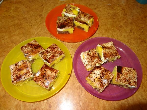 u nás dnes dvoje menu, deti s tatíkom mali kurací vývar, ja kapustnicu s chlebíkom. Druhé bol segedin s knedlou, akosi som nestihla odfotiť, deti mali rybie prsty s hranolkami (viem nezdravé, ale raz za čas nezaškodí). Poobede sme mali pudingový koláčik so smotanou navrchu. Použila som domáce vajíčka, je krásne žltý od nich.