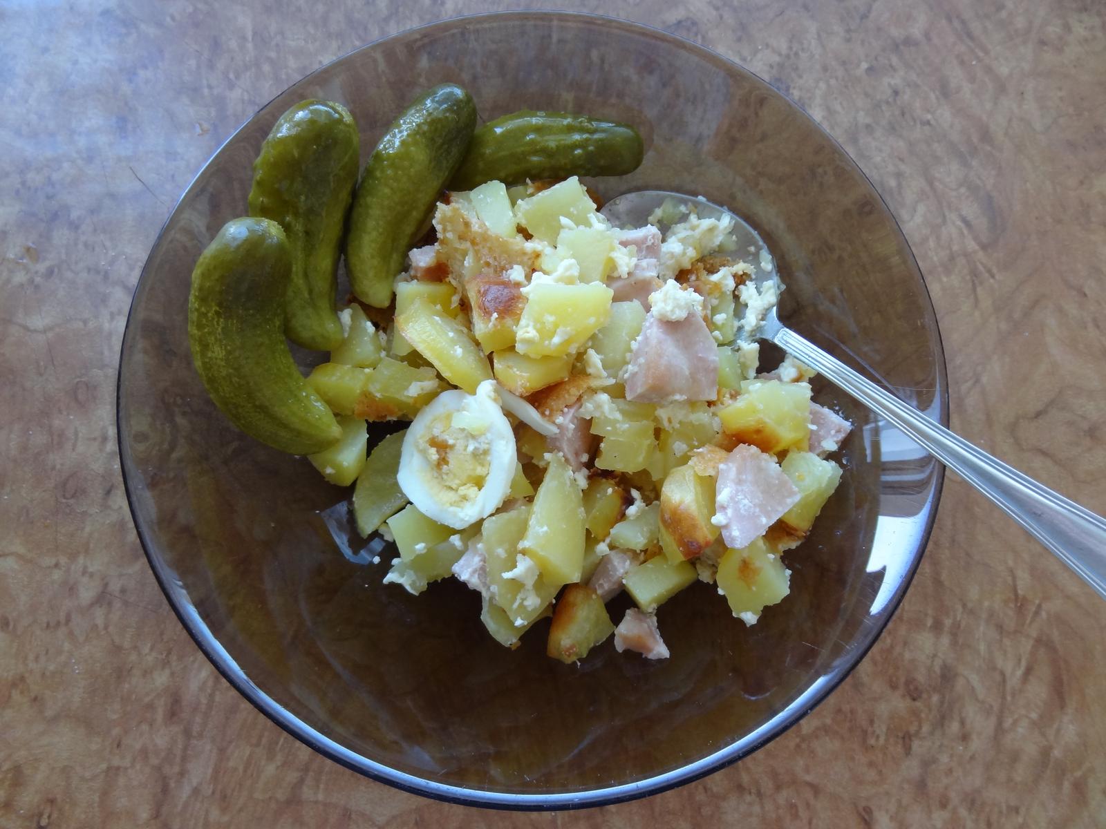 naša večera praženica s cibuľkou,kečup, chrumkavé pečivo 😉