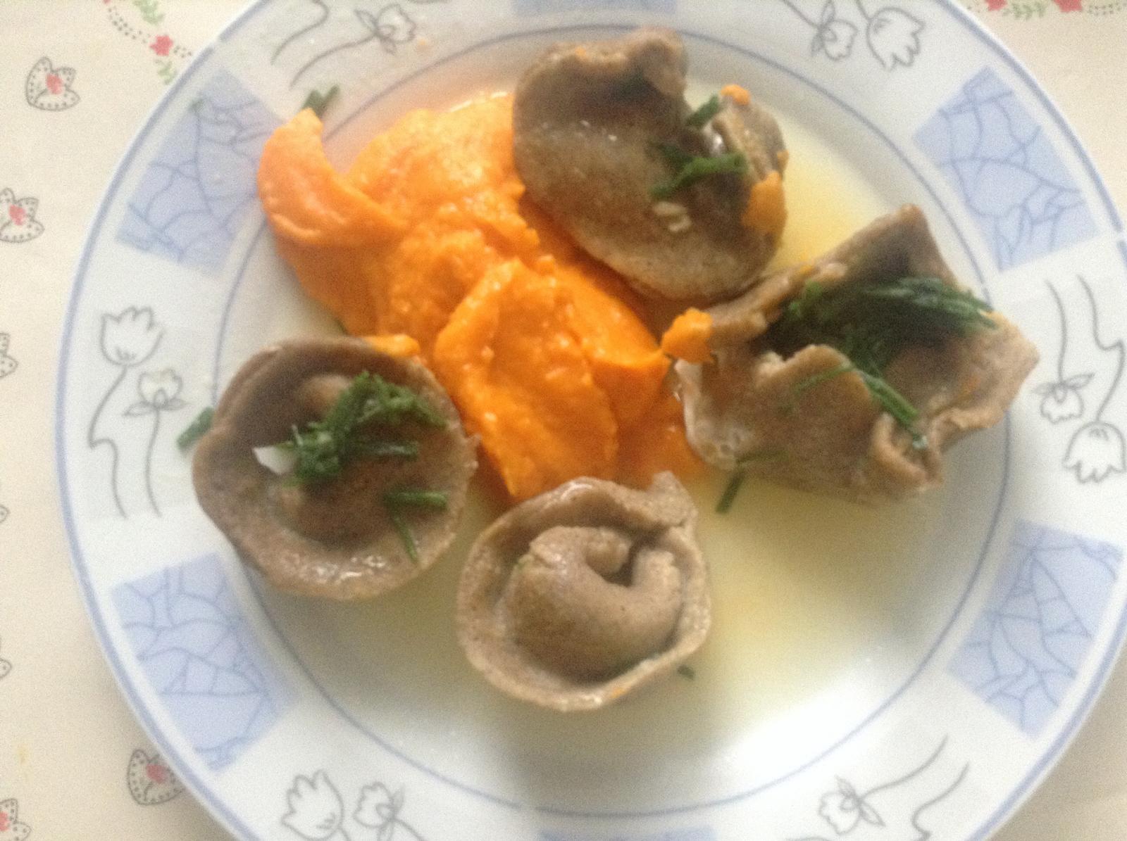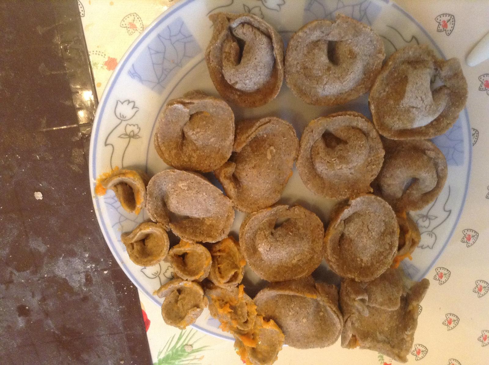 My dnes dojedame zleninovu polievku (my velki) a robila som prvykrat tortellini podla receptu z lidla od tych dvoch -plnene hokkaido tekvicou. Ale robila som ich okrem klasickej muky aj z ovsennej a amarantovej, z kazdej asi po tretine a zo zvysku plnky som spravila omacku. Su sice nejake velke a dalsie zas male, no prvy pokus, mozno sa casom vypracujem 🙂)