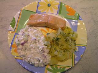 zajtra bude losos so zemiakmi a cottage omáčkou