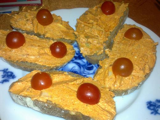 u nas dnes zeleninova polievka a karé na zelenine s cestovinami ,robila som aj bryndzovú pomazanku a dojedala sa plnena paprika a vajičková pomazanka.Teraz ked sa ochladilo tak chlalani chcú na večeru len litre čaju a natretý chleba,z vonka pridu uzimený tak by aj klince pojedli 😀 😀 😀 .