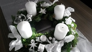 a prva sviecka pri obede na nasom tohtorocnom adventnom venci zazata.. 🙂