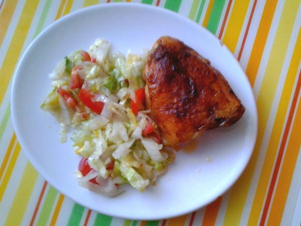 Dnes sme mali vývar a druhé bola kuracinka so sladkokyslou omáčkou, k tomu ryža.