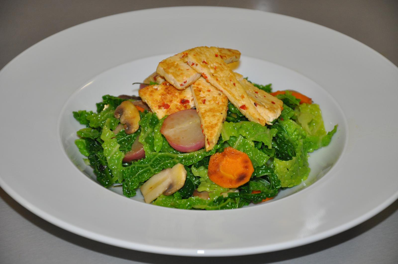 My zajtra cukinova polievka na kyslo,opekane zemiaky (mala len,uvarene) a tofu v paradajkovej omacke.deti maju este masko.