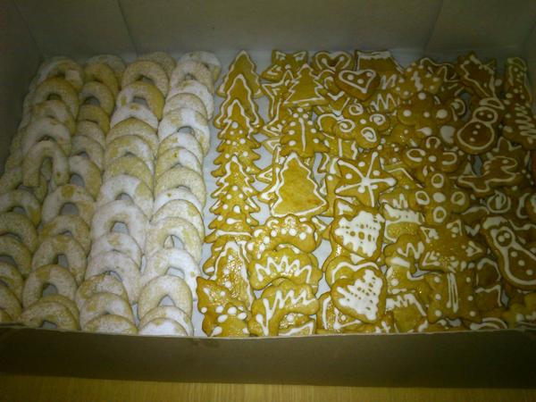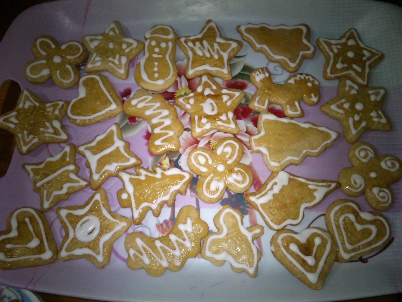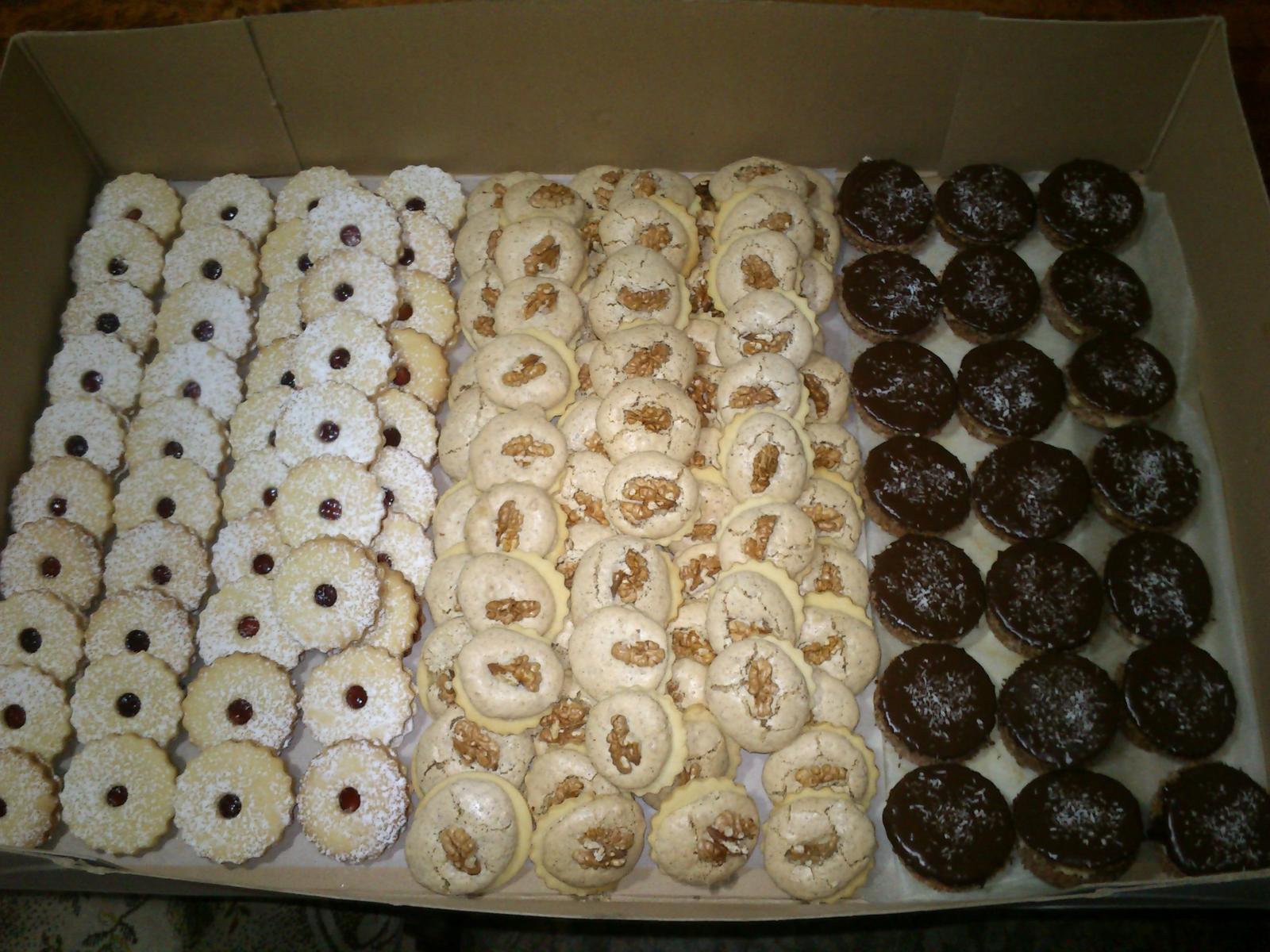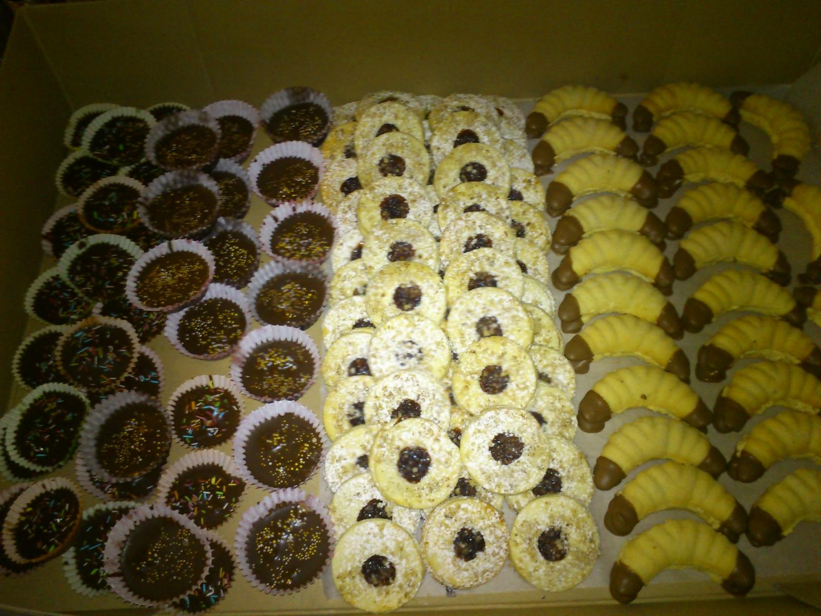 tak pridávam pokračovanie fitiek z vianočného pečenia, už mám komplet 13 druhov koláčikov 😉 medovníčky, linecké, u nás im hovoríme mačie oči, poľovnícke gombičky, orechové snehové pusinky s karamelovým krémom, kokosové strapáče, škoricové trojhránky, košíčky s punčovinou, šuhajdy s orechovou náplňou, kolieska s orechovým vrškom pečené s náplňou, rožteky plnené karamelovým krémom, žabky - podobné ako parížske rožteky, ale jednoduchšie na prípravu, nepečené guličky s lieskovými orieškami, robila staršia dcéra 😉