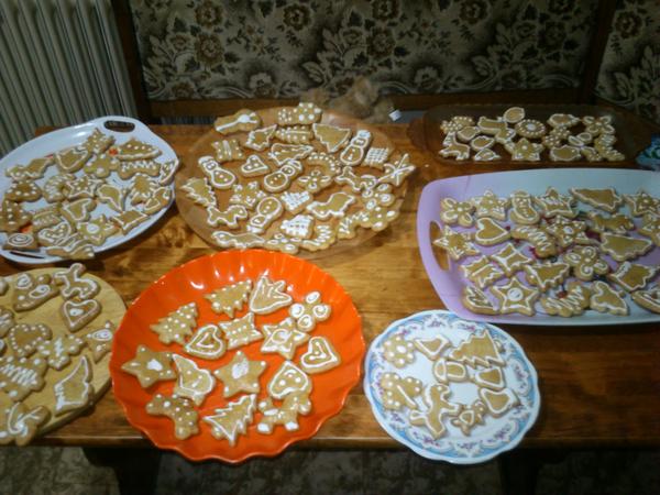 dnes fazulova polievka na kyslo s domacimi udenymi rebrami a masko na prirodno zapekane so syrom s ryzou a griovanymi zemiakmi a bude aj na zajtra, vcera som piekla z 2.5 kg cesta kosicky, oriesky, sisky, dnes z 2.5 kg linecke, zajtra budem piect 3 davky kokosky a pred par dnami som piekla skoricove hviezdicky a uz zacinam mat toho pomaly ale isto dost 😉
