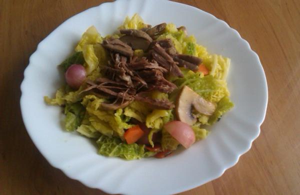 dnes som skúšala teplý šalát z blanšírovaného kelu od @irsina83 ,chcela som aj to tofu, len malá je chorá, do obchodu sa teda nedalo, tak sme si ho naservírovali s vereným maskom z polievky ,polievka ešte z nedele 😉