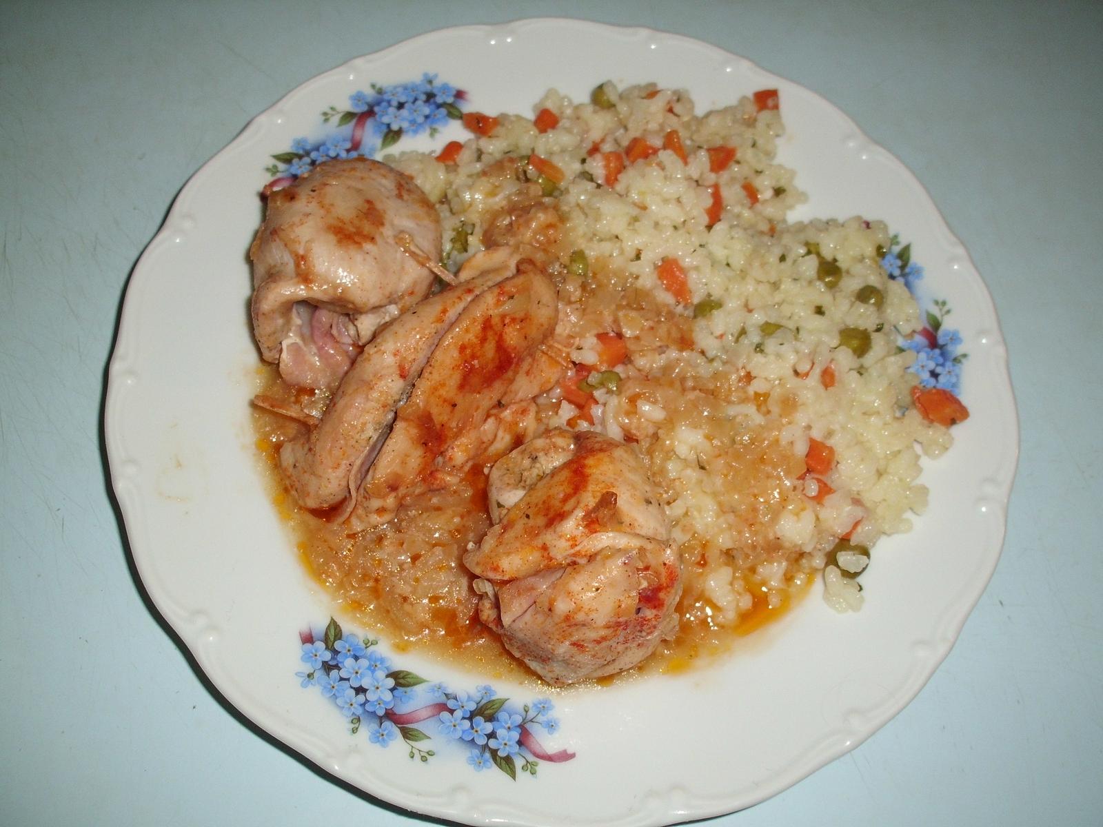 V nedelu sme boli na obed u našich. Včera, v pondelok som narýchlo večer zvrtla kuracie závitky plnené šunkou, mozarellou a k tomu ryžu.