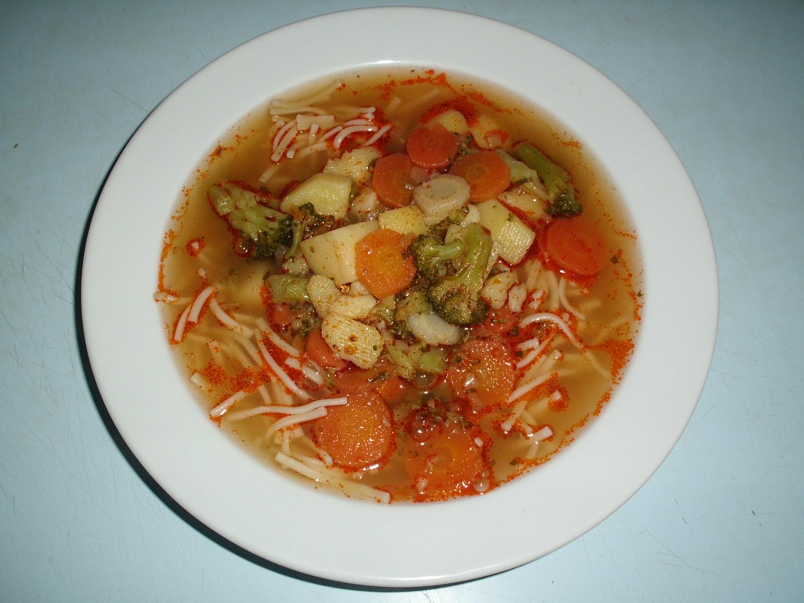 ahojte, dnes zeleninová na masle ( pórik, mrkva,kaleráb,hrášok,rúžičkový kel ) s krupicovými knedlíkmi a žemľovka s tvarohom a broskyňami 😉