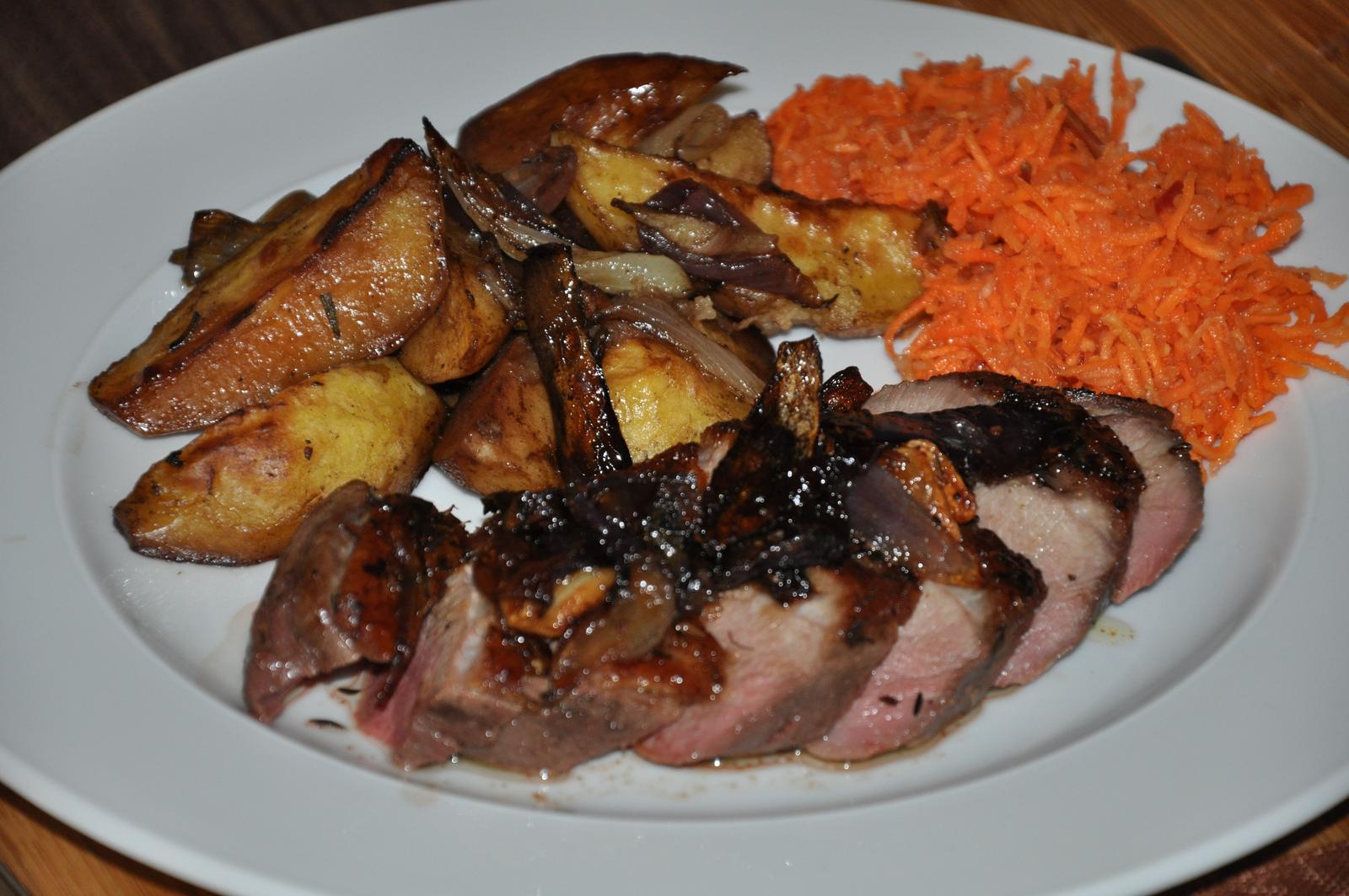 Vcera sme mali kacacie prsia a zemiaky podla J. Olivera a dnes zemiakova omacka s mungo fazulkami zo sojoveho mlieka a hovadzia pecene fasirka.