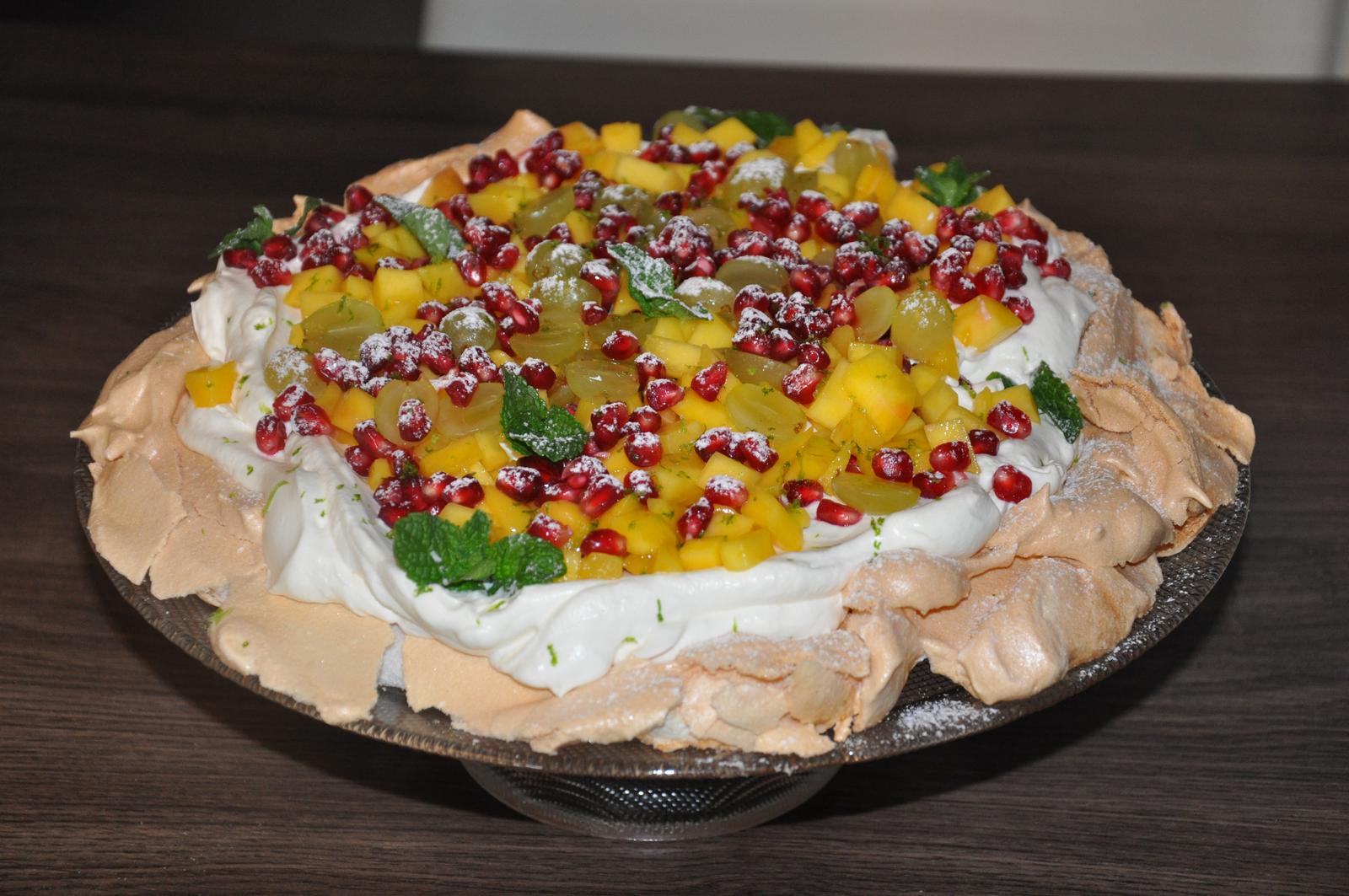 @bobinkask tu je recept na tortu : http://varecha.pravda.sk/recepty/pavlova-torta/... a na pusinky: http://varecha.pravda.sk/recepty/jednoduche-kok... a ja som icj ozdobila mangom, granatovym jablkom, hroznom, matou a nastruhanou limetkovou korou 😉